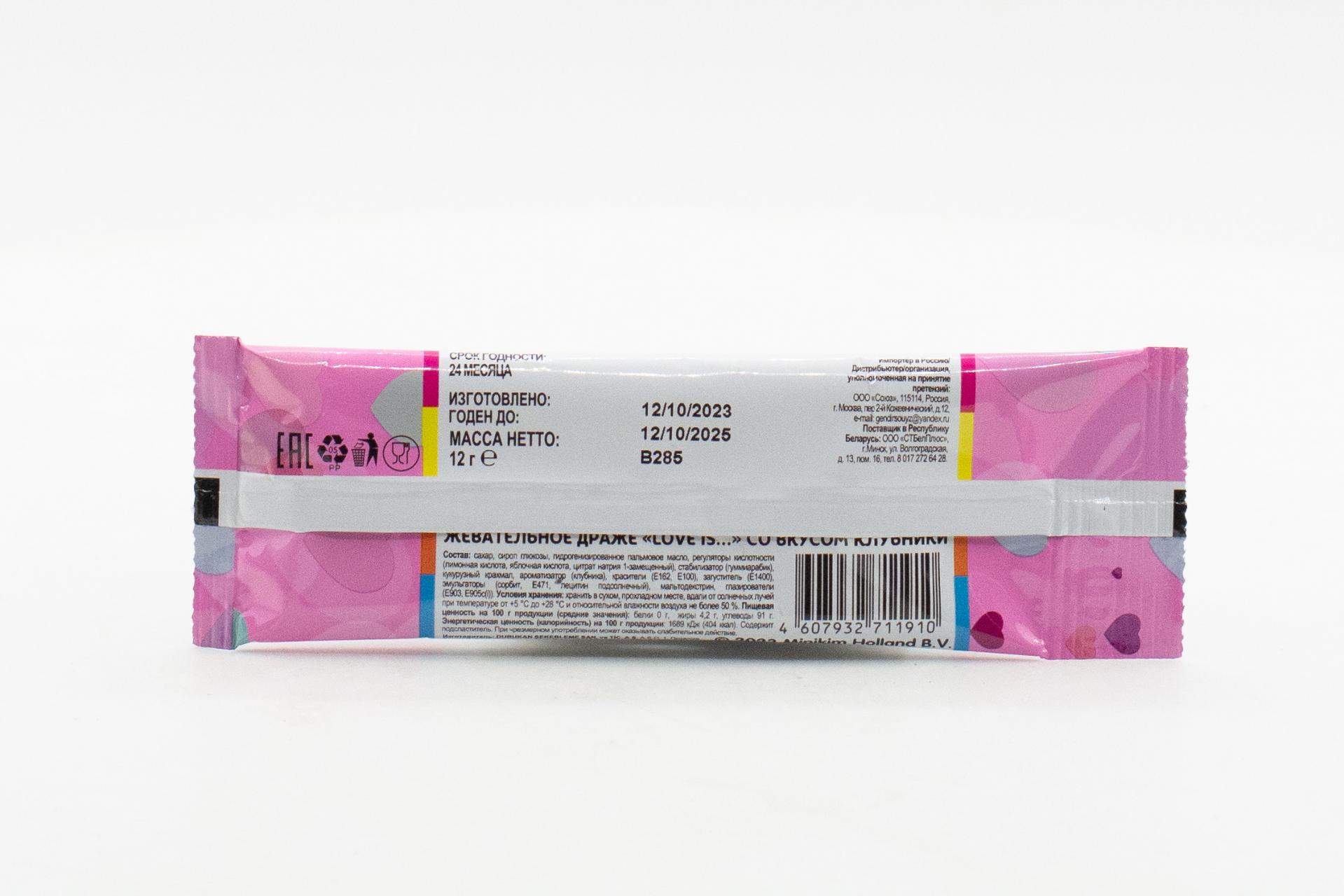 Жевательное драже LOVE IS со вкусом клубники 12гр22,68 руб. за штуку (в упак. 24 шт.) |